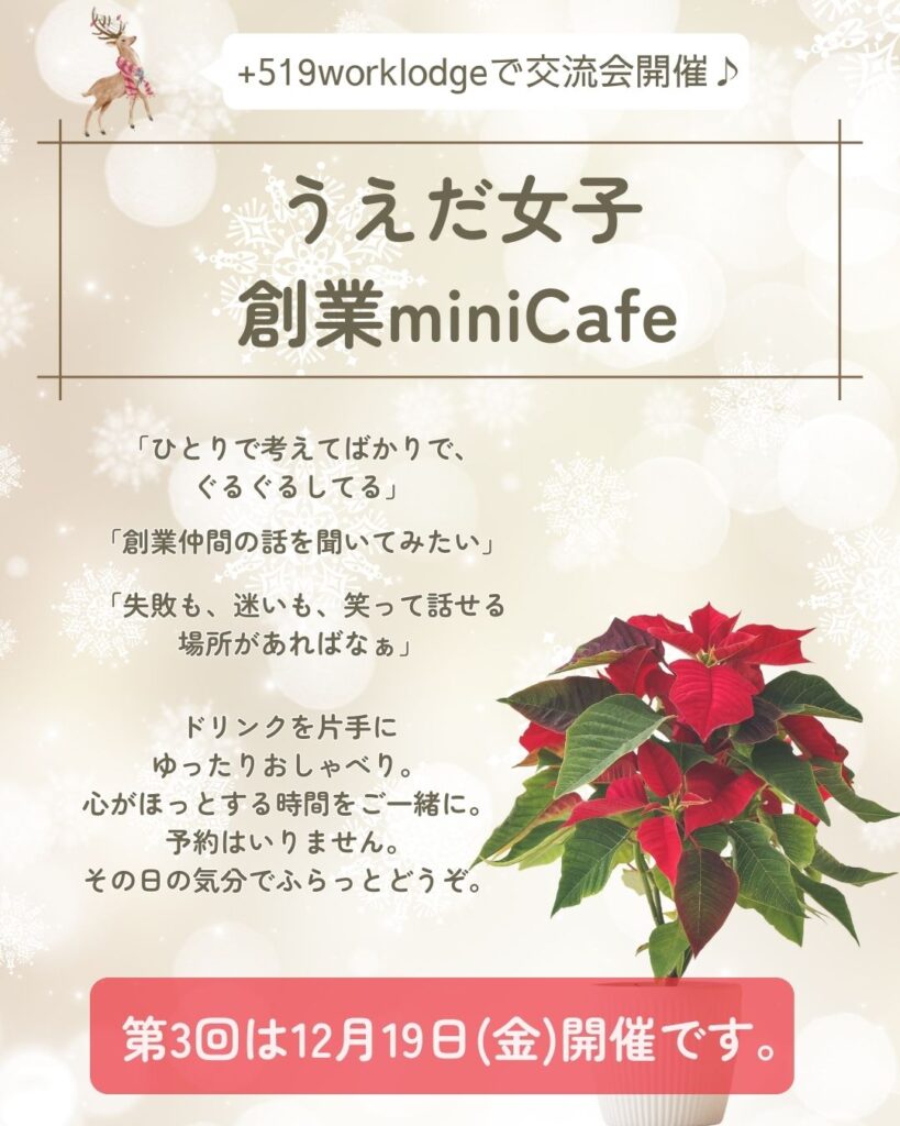 昨年度ご好評いただいた「Be Bright!~うえだ女子創業Café~」や、