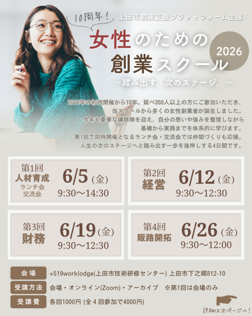【10周年!】女性のための創業スクール2026~踏みだす、次のステージ。~
